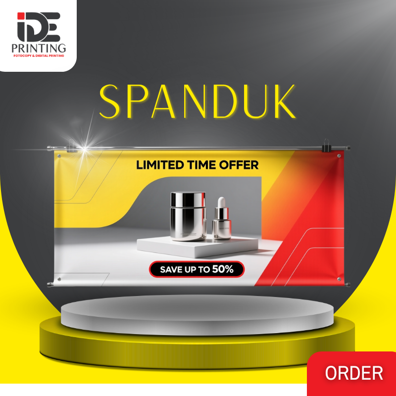 Di Ide Printing cetak spanduk per meter persegi 25rb, dapatkan POTONGAN HARGA dengan order jumlah tertentu